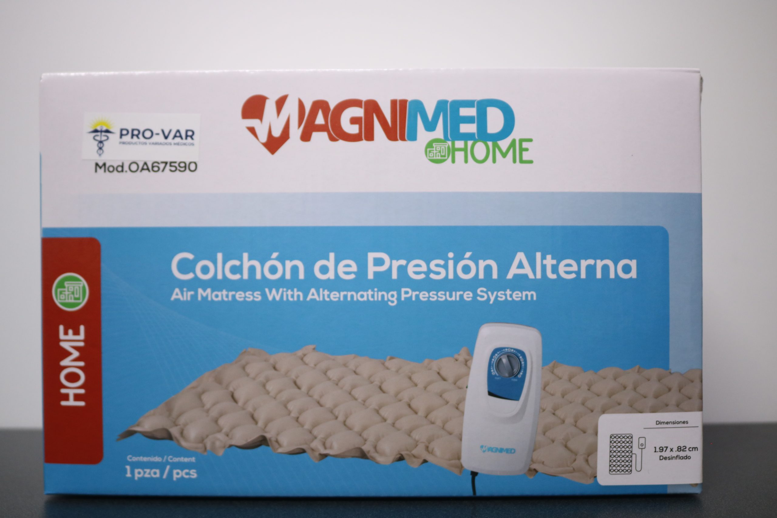 Diseñado para el cuidado domiciliario de pacientes encamados, este colchón antillagas incorpora un sistema de presión alterna que cicla secuencialmente entre dos grupos de celdas de aire. Esta tecnología redistribuye constantemente los puntos de presión, mejorando la circulación y reduciendo el riesgo de formación de escaras.